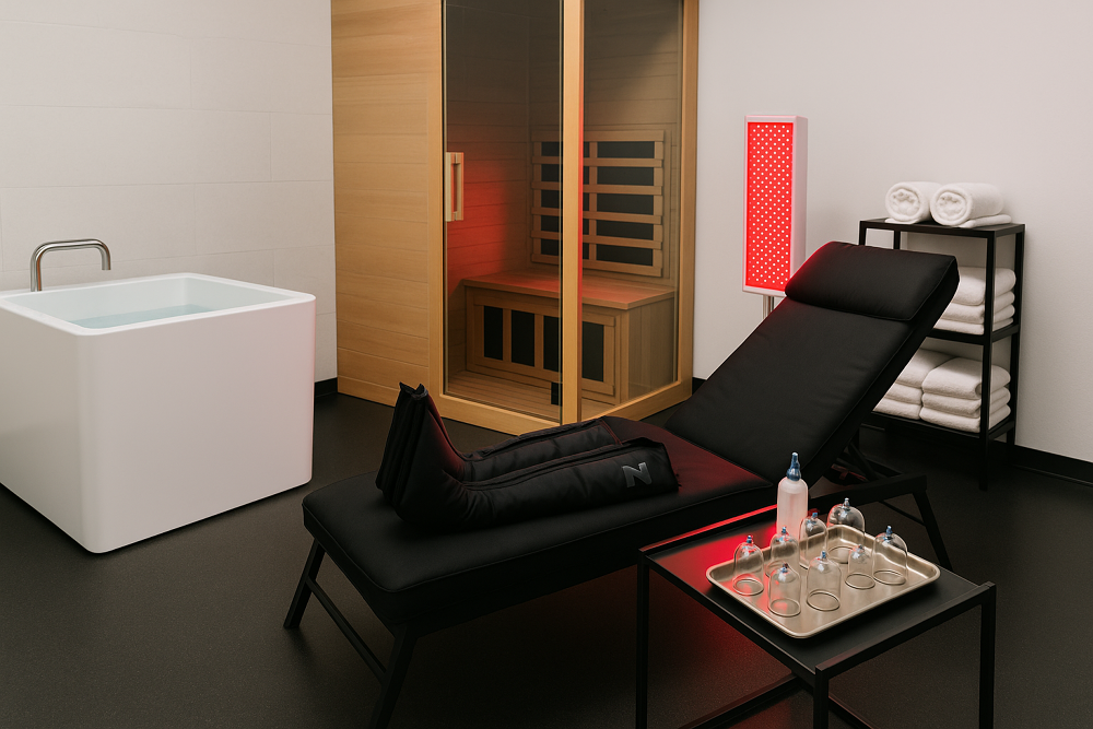 - One 25-minute recovery session per month included with membership. Unlimited access to sauna, cold plunge and recovery modalities.